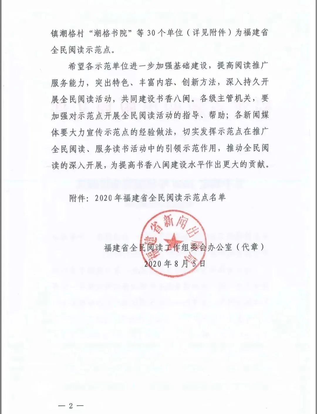 泰寧縣杉城鎮際溪被評為2020年福建省全民閱讀示范點! 根據福建省新聞出版局關于確定2020年福建省全民閱讀示范點的通知(閩新出〔2020〕129號),泰寧縣杉城鎮際溪村被評為2020年福建省全民閱讀示范點。