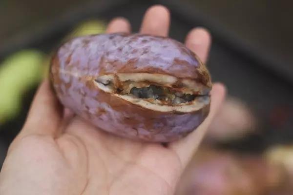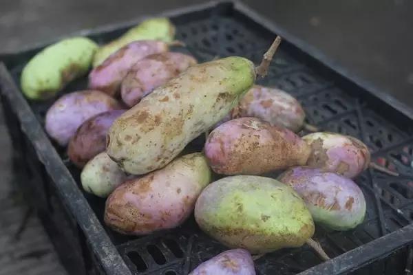 九月黃,俗稱“牛卵子”,每年9-10月為成熟期。九月黃外形長得有點像腎,皮厚籽多,外殼和果肉均為黃色,果肉甜,濃香,滑嫩,味道有點像柿子,吃過一次,永遠也忘不了。