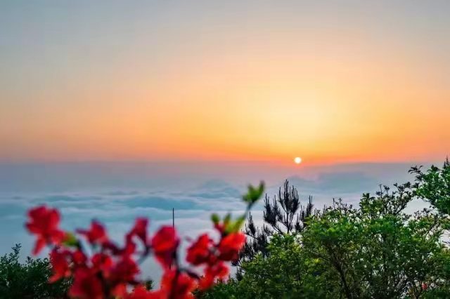 何須名苑看春風(fēng),一路山花不負(fù)儂 海拔1700多米的峨嵋峰 漫山紅遍 似火若霞 杜鵑啊杜鵑 裝飾了峰巖 點(diǎn)亮了人間 不讓梅桃專美于前
