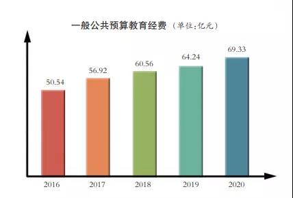 2016年以來,我市先后出臺《關(guān)于補(bǔ)短板提質(zhì)量加快教育事業(yè)發(fā)展的實(shí)施意見》《關(guān)于推進(jìn)市區(qū)基礎(chǔ)教育總校制辦學(xué)的意見(試行)》《關(guān)于促進(jìn)基礎(chǔ)教育高質(zhì)量發(fā)展的若干措施》等一系列政策文件,集中人力、財力、物力加快教育發(fā)展。 2016年至2020年,一般公共預(yù)算教育經(jīng)費(fèi)分別投入50.54億元、56.92億元、60.56億元、64.24億元、69.33億元,占一般公共預(yù)算支出比重分別為19.92%、19.56%、20.38%、20.29%、20.73%,年均增長率7.21%。