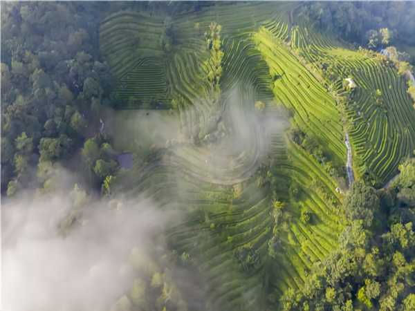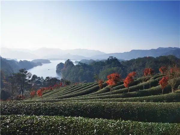 秋日的茶山在晨霧的籠罩和朝陽的渲染下,在紅楓葉的點綴下,猶如繪畫大師的調色盤。晨時,霧氣騰起,在微風的吹拂下,整個茶山仿佛披上一抹柔美的輕紗。傍晚時分,一抹絢麗的晚霞映照著美麗的茶山和湖面,顯得無比壯觀,暈染成大師筆下一幅幅山水筆墨畫。云賞茶園,你是否也沉醉其中。