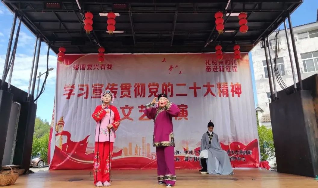 方法出新意:當好新時代的“說書人” “第一個問題,中國共產(chǎn)黨現(xiàn)在的中心任務是什么?”在上青鄉(xiāng)學習貫徹黨的二十大精神的文藝惠演上,主持人正在與群眾進行互動。 為把黨的二十大報告中的“好聲音”傳得更開更廣更深入,上青鄉(xiāng)通過采取理論宣講和梅林戲、古樂等藝術(shù)形式宣講相結(jié)合的方式,改變傳統(tǒng)“你講我聽”的方式,讓群眾有更多的“看、思、悟”。 同時,依托新時代文明實踐平臺,組建由能說善講的年輕干部、草根名嘴、身邊好人、老黨員組成的黨的二十大精神宣講團,推出“菜單式”宣講服務,針對不同的層次的對象、不同的學習需求,開展不同的宣講,讓黨的二十大精神直抵人心、溫暖人心、凝聚人心。