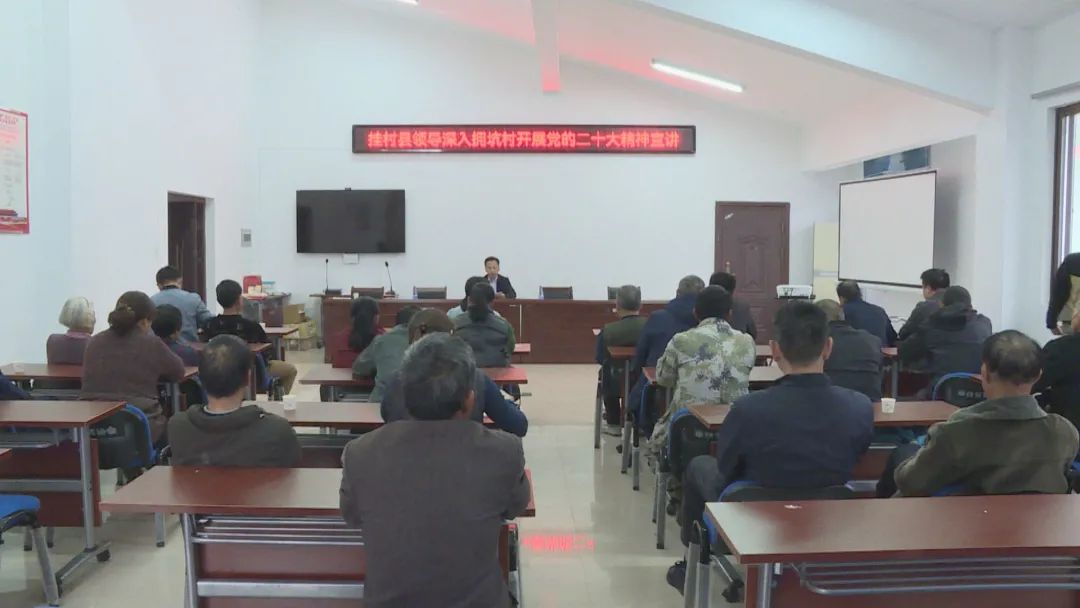 在大田村,黃維云結合大田鄉實際,從充分認識黨的二十大精神的重大意義、全面準確學習領會黨的二十大精神和推動黨的二十大精神落地生根等方面進行了宣講。 黃維云指出,要按照“五個牢牢把握”重要要求,深學細悟黨的二十大精神,切實把思想和行動統一到黨中央決策部署上來。要發展鄉村特色產業。發揮紅色、旅游資源優勢,持續壯大村集體經濟和農民增收。要推進鄉村人才振興。加快培養鄉村人才隊伍,為鄉村振興發展提供人才支撐。要建設美麗宜居鄉村。持續深化“五個美麗”創建,提升村容村貌,營造整潔優美人居環境。要加強鄉村文化建設。弘揚新風正氣,推進移風易俗,培育文明鄉風、良好家風、淳樸民風。要堅持黨建引領發展。夯實基層黨建基礎,增強責任感使命感,推動鄉村振興各項工作全面提升。 縣委常委、縣紀委書記、縣監委主任羅水河到梅口鄉擁坑村宣講黨的二十大精神