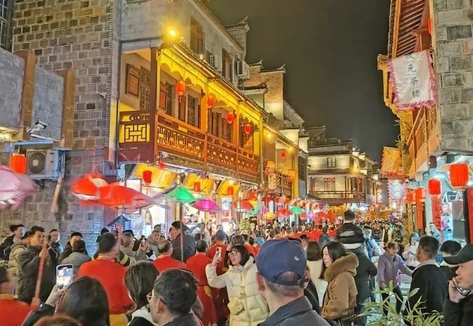 古城是靜態的,也是動態的;是沉淀的歷史,也是“煙火氣”的當下。2021年,泰寧舉全縣之力申報國家歷史文化名城,開啟古城修復之路。通過采用“微改造”的“繡花”功夫,小規模、漸進式推進古城街區和歷史建筑的修繕工作;累計修繕文物建筑、歷史建筑、傳統風貌建筑100余棟,修復古城巷道肌理8公里、立面20余萬平方米,不僅保留了古街肌理格局與風貌,還完善了雨污分流、消防、夜景燈等配套設施,讓古城在保留歷史韻味的同時,也具備了現代生活的便利。 古韻今風續華章 在保護與發展的道路上,泰寧古城探索出了一條獨具匠心的路徑,堅持保留其特有的生活氣息和人文關懷,保留原住民的生活環境,并且充分挖掘街區內人文歷史、非遺文化以及狀元文化內涵,讓“古城味、人間色、煙火氣”相融,煥發出生生不息的魅力。 今年春節期間,泰寧古城大街小巷張燈結彩,人流如潮。各色民俗表演走街串巷,魚子燈、橋燈、花燈等爭奇斗艷,梅林戲、儺舞、擂茶、棕編等非遺文化魅力迸發,走到哪都人頭攢動,熱鬧非凡。