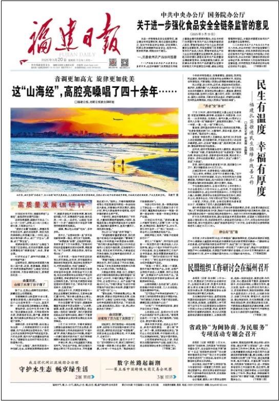 《光明日報》2025年3月20日第01版 《福建日報》2025年3月20日第01版 編者按 “八山一水一分田”,福建的資源稟賦并不突出,卻硬是以“愛拼才會贏”的精神,開辟出獨(dú)特發(fā)展道路。一曲蕩氣回腸的“山海經(jīng)”,讓閩山閩水煥發(fā)出新的生機(jī)。光明日報始終篤行開門辦報傳統(tǒng),全國兩會后與福建日報組成聯(lián)合調(diào)研組,在面朝大海、春意融融的八閩大地上,共同踐行“四力”,共同記錄新時代新福建的新氣象,并于今日共同在頭版頭條刊發(fā)調(diào)研文章。且聽《這“山海經(jīng)”,高腔亮嗓唱了四十余年……》