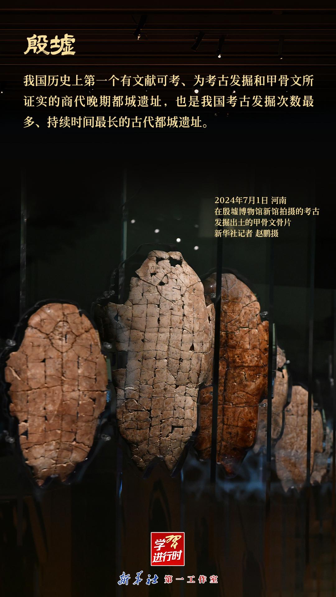 殷墟出土的甲骨文為我們保存3000年前的文字,把中國(guó)信史向上推進(jìn)了約1000年。殷墟我向往已久,這次來是想更深地學(xué)習(xí)理解中華文明,古為今用,為更好建設(shè)中華民族現(xiàn)代文明提供借鑒。 ——2022年10月,習(xí)近平總書記在河南安陽市考察時(shí)指出
