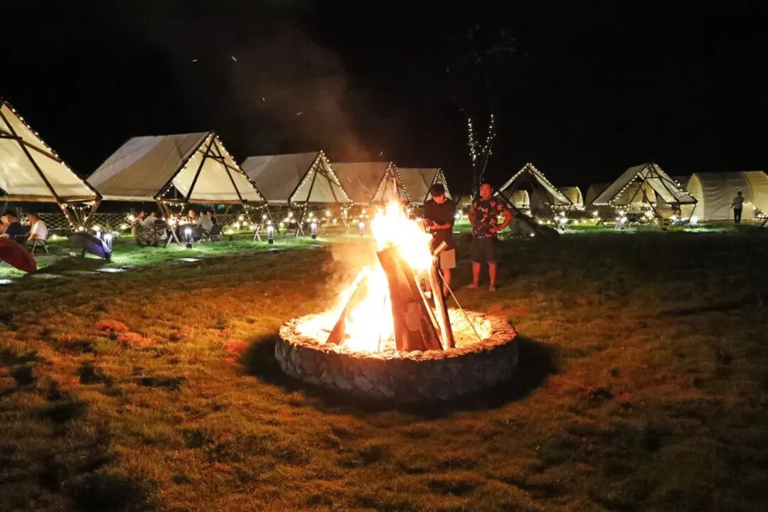 9月5日, 泰寧縣大龍鄉雙坪村 遠山近水山野星空露營基地人聲鼎沸。 一頂帳篷、三五好友, 抬頭便是漫天繁星…… 這樣松弛的露營體驗, 已成為年輕人最愛的周末儀式, 篝火閃爍,煙火升騰, 笑聲在山谷里久久回蕩。