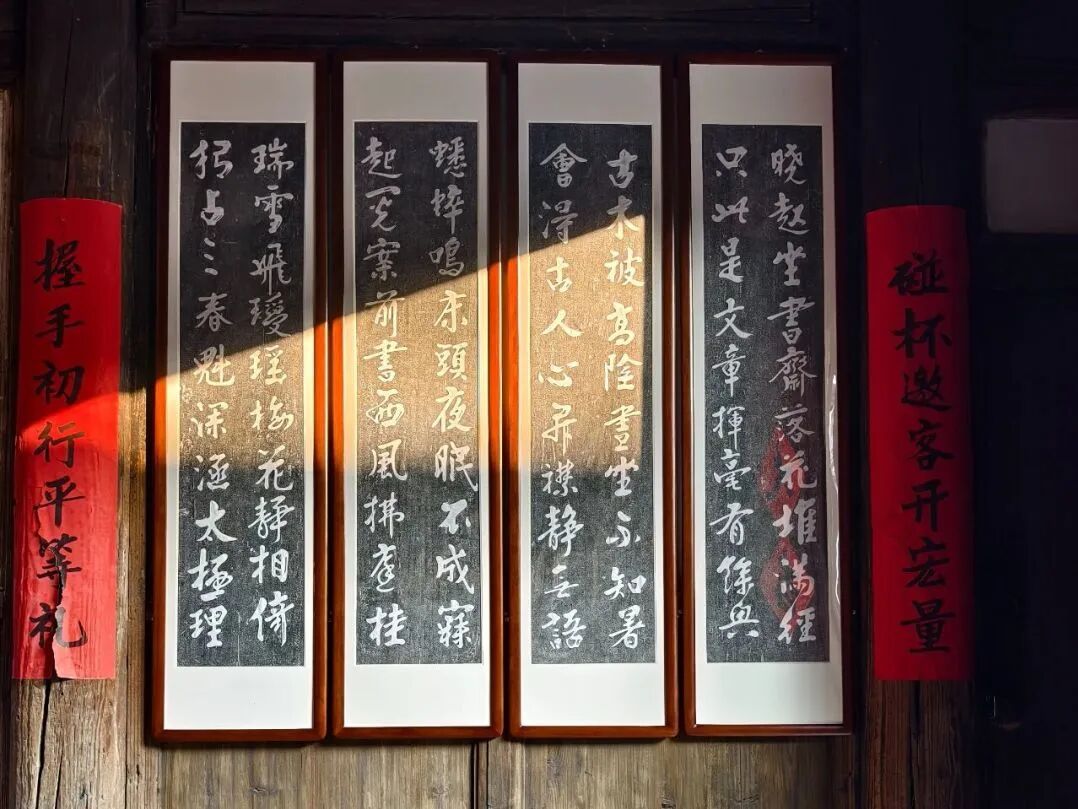 ▲朱熹《四季詩》 由于從小便跟著爺爺和母親做幫手,梁臻對拓印和字畫裝裱早已輕車熟路。2020年,她正式接手梁氏拓印與裝裱工作,成為“梁氏拓印裝裱”傳承人。在繼承與發揚梁氏拓印、字畫裝裱技藝的實踐中,她更以女性獨有的細膩與韌性,為這門老手藝注入新活力。她積極挖掘地方特色元素、雕刻拓版,融入拓印實踐;將古老技藝帶出深宅,鋪展于山石之間,讓沉睡的古老文字通過拓印,走進當代人的視野與生活。