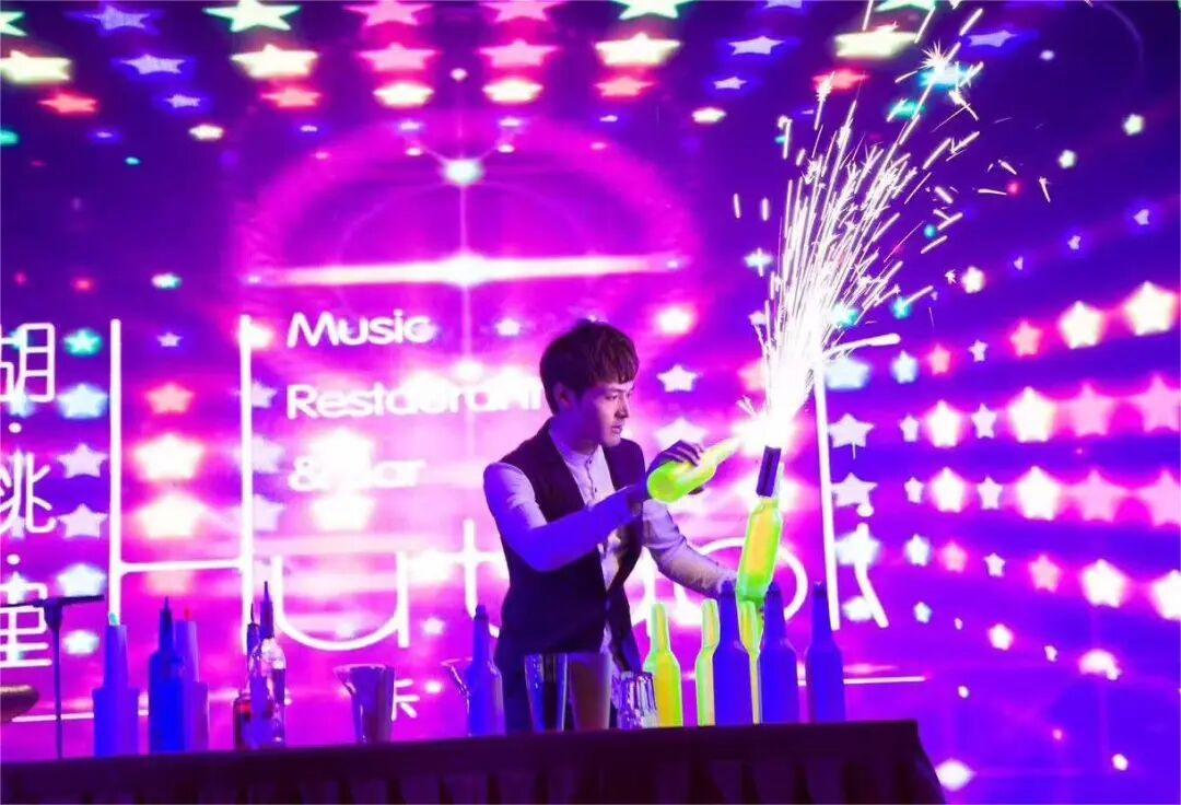 花樣調酒環節 調酒師花式展示著火焰與酒瓶的碰撞,伴著音樂為你定制一杯專屬味道,讓夜色在味蕾里沉醉。