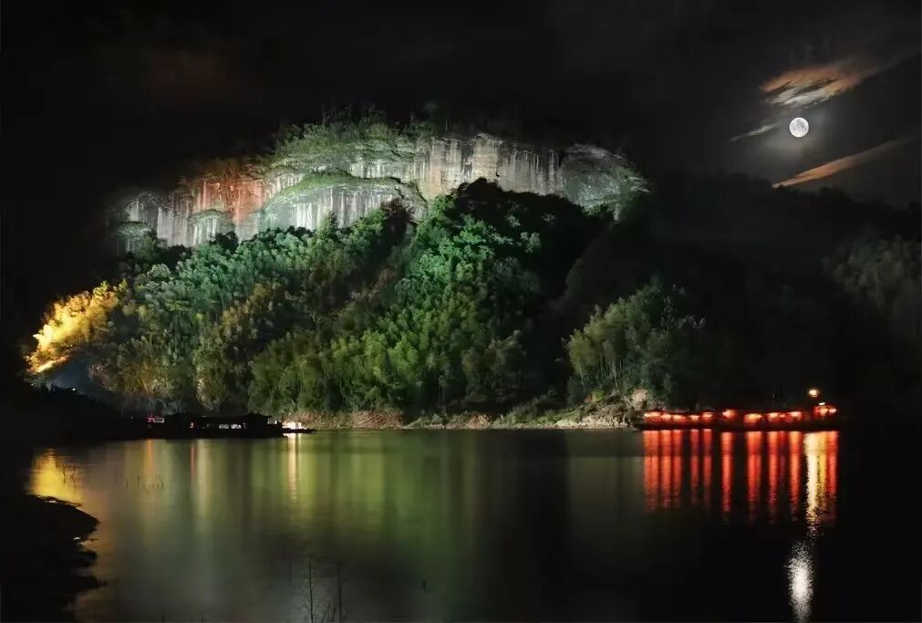 九龍?zhí)?/strong> 夜游秘境,月棲丹崖 夜幕下的九龍?zhí)鹅o謐而神秘, 月光穿透潭面薄霧, 如仙境般夢(mèng)幻。 乘一葉小舟穿行其間, 仿佛進(jìn)入月光打造的童話世界。