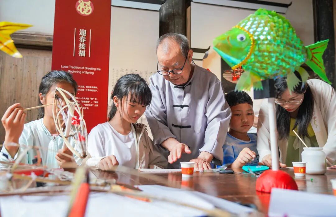 非遺代表性傳承人涂聲福教小朋友制作魚子燈 古城之外,非遺傳承工作也在進(jìn)行。肖秋紅介紹,泰寧縣于去年全面啟動(dòng)非遺代表性傳承人隊(duì)伍建設(shè)。一方面,發(fā)動(dòng)中小學(xué)教師學(xué)習(xí)、傳承本地非遺,打造年輕傳承隊(duì)伍,也為非遺進(jìn)校園培養(yǎng)師資隊(duì)伍;另一方面,走進(jìn)老年大學(xué),面向老年人開班授課,組建非遺展示隊(duì)伍,擴(kuò)大非遺展示覆蓋面。 “我們?cè)趥鞒泻脙?yōu)秀傳統(tǒng)劇目、開展常態(tài)化公益演出的同時(shí),也在探索將梅林戲與舞蹈、流行音樂等其他藝術(shù)表現(xiàn)形式結(jié)合,創(chuàng)作更新鮮的節(jié)目,努力讓更多人愛上梅林戲。”泰寧縣梅林戲藝術(shù)傳承保護(hù)中心主任毛清標(biāo)說。 “古城的文化味回來了,人氣也回來了。”這兩年,梁光葵的弟弟、“梁氏拓印裝裱”非遺代表性傳承人梁光葆在自家祖厝里,接待了許多參觀的游客。