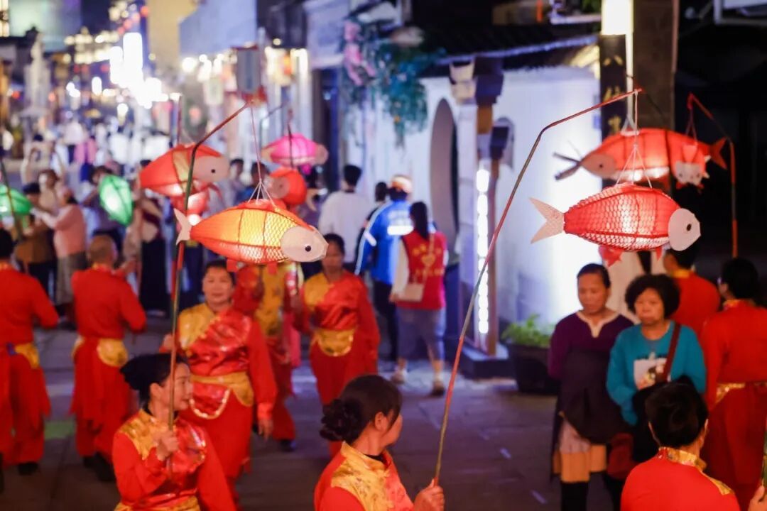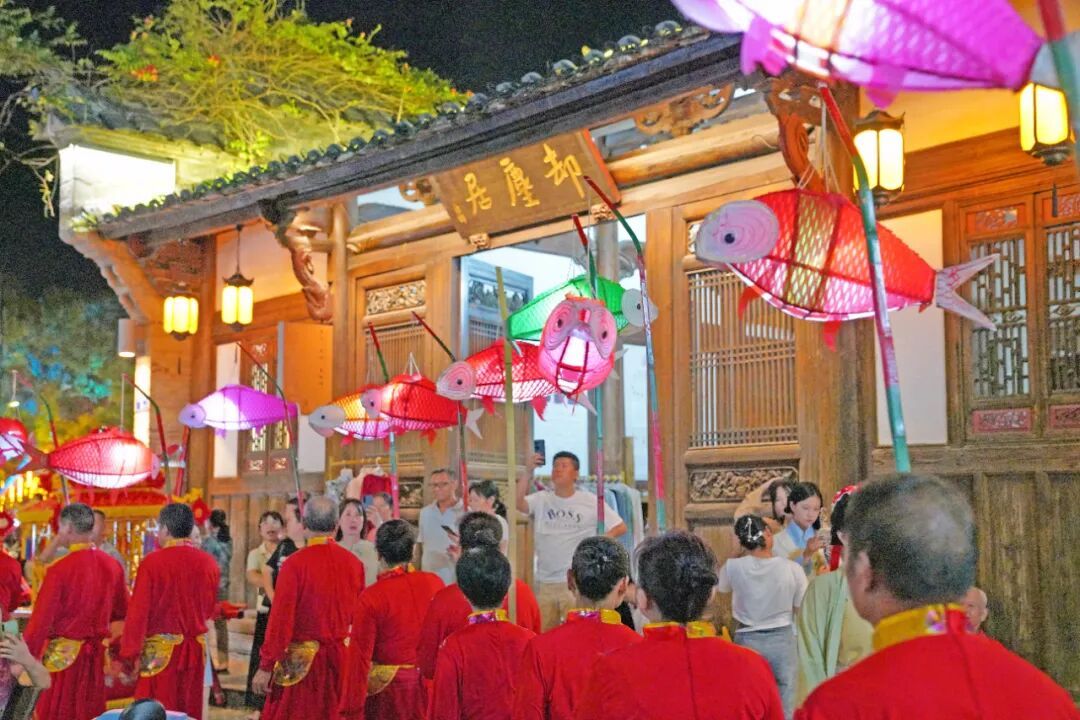 蔣周生 攝 從單一傳承到雙向奔赴 “非遺的生命力在于傳承,而傳承的核心在于人。泰寧古城所提供的,不僅是一個展示的舞臺。”泰寧縣文化館館長肖秋紅說。 茶東坑魚子燈是泰寧縣杉城鎮東石村獨有的一種游燈習俗,始自清朝道光年間,至今已有180多年的歷史,2015年10月列入三明市第四批非遺名錄。前幾年,隨著村里人口搬遷流失,這門熱鬧了幾代人的傳統技藝,一度沉寂了數年。 2023年,泰寧古城邀請魚子燈表演隊伍每周到古城進行常態化表演,各重大節日到古城開展特色民俗表演。
